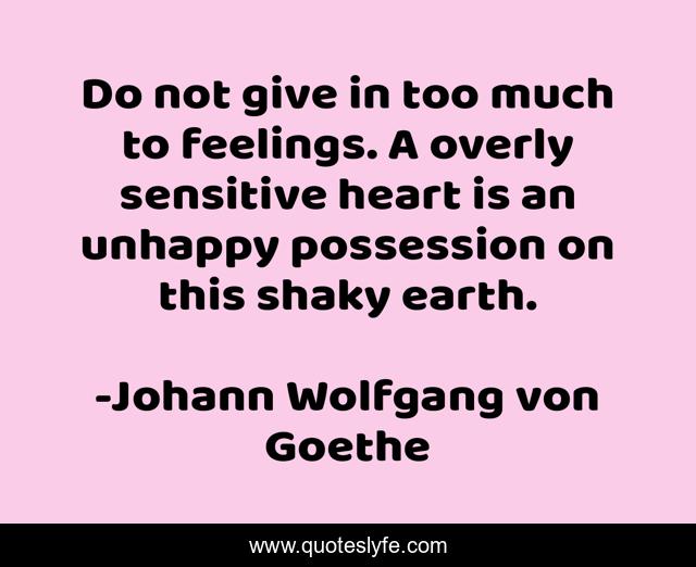 This page presents the quote "Do not give in too much to feelings. A overly sensitive heart is an unhappy possession on this shaky earth.". Author of this quote is Johann Wolfgang von Goethe. This quote is about heart, feelings, give,.