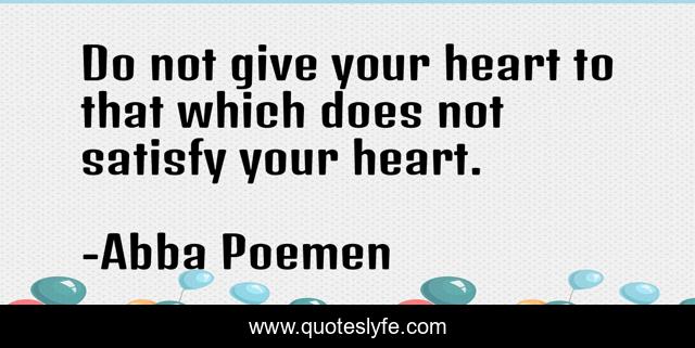 This page presents the quote "Do not give your heart to that which does not satisfy your heart.". Author of this quote is Abba Poemen. This quote is about spirituality, desert-fathers, prayer,.