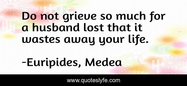 This page presents the quote "Do not grieve so much for a husband lost that it wastes away your life.". Author of this quote is Euripides, Medea. This quote is about loss, life, love, grieve, anger, affection,.