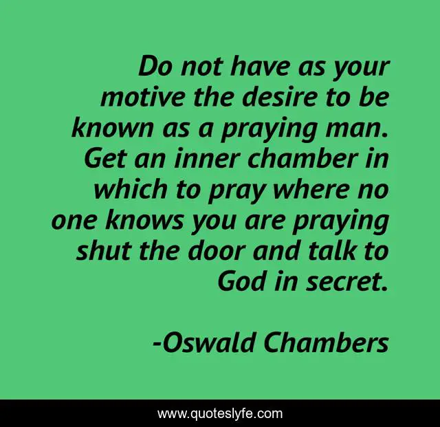 This page presents the quote "Do not have as your motive the desire to be known as a praying man. Get an inner chamber in which to pray where no one knows you are praying shut the door and talk to God in secret.". Author of this quote is Oswald Chambers. .