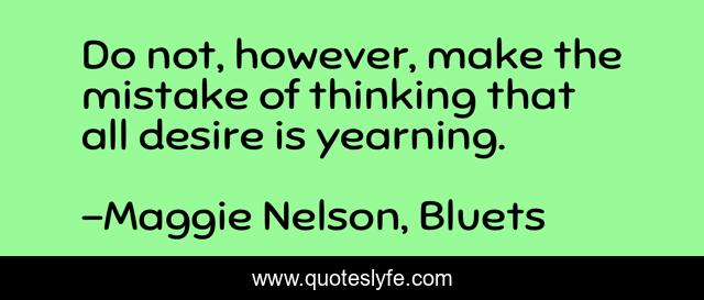 This page presents the quote "Do not, however, make the mistake of thinking that all desire is yearning.". Author of this quote is Maggie Nelson, Bluets. .