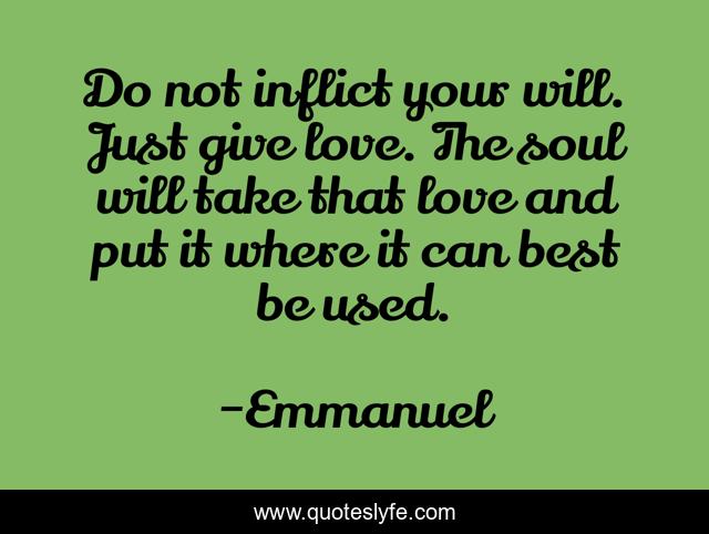 This page presents the quote "Do not inflict your will. Just give love. The soul will take that love and put it where it can best be used.". Author of this quote is Emmanuel. This quote is about helping, people,.