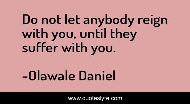 This page presents the quote "Do not let anybody reign with you, until they suffer with you.". Author of this quote is Olawale Daniel. This quote is about suffering, suffer, anybody, reign,.