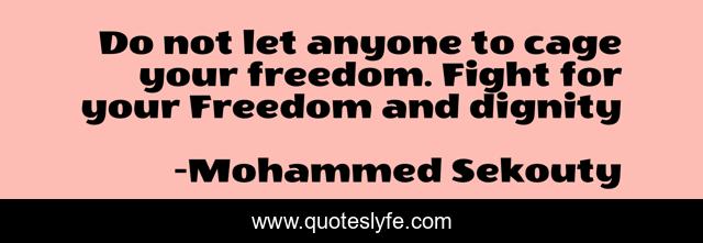 This page presents the quote "Do not let anyone to cage your freedom. Fight for your Freedom and dignity". Author of this quote is Mohammed Sekouty. .