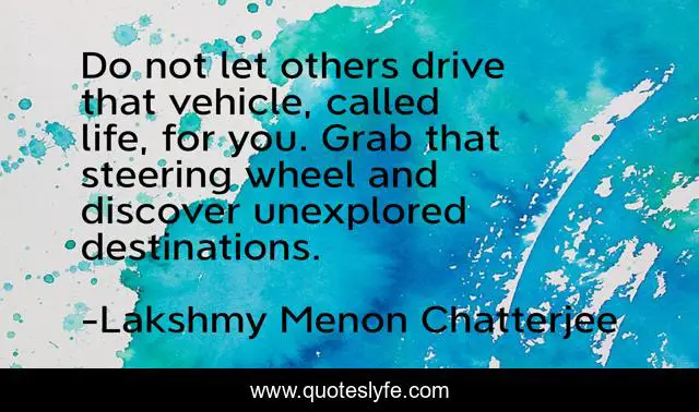 This page presents the quote "Do not let others drive that vehicle, called life, for you. Grab that steering wheel and discover unexplored destinations.". Author of this quote is Lakshmy Menon Chatterjee. .