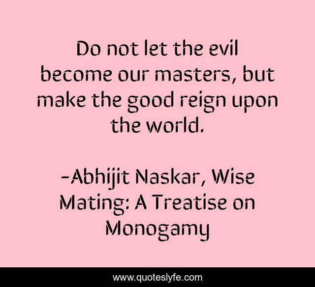 "Abhijit Naskar, Wise Mating: A Treatise on Monogamy Quotes." Quoteslyfe.com, 2025. Mon. 08 Dec. 2025. <https://www.quoteslyfe.com/quote/Do-not-let-the-evil-become-our-102438>.
