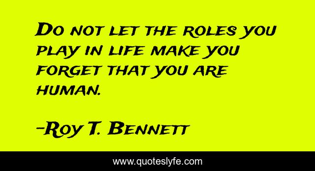 This page presents the quote "Do not let the roles you play in life make you forget that you are human.". Author of this quote is Roy T. Bennett. This quote is about living, inspiring, inspire, life, being-human, inspirational, enthusiasm, humanity, inspiration,.