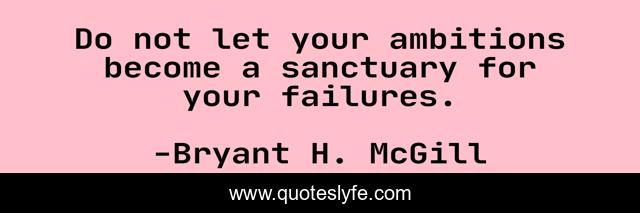 This page presents the quote "Do not let your ambitions become a sanctuary for your failures.". Author of this quote is Bryant H. McGill. This quote is about become, sanctuary, failures,.