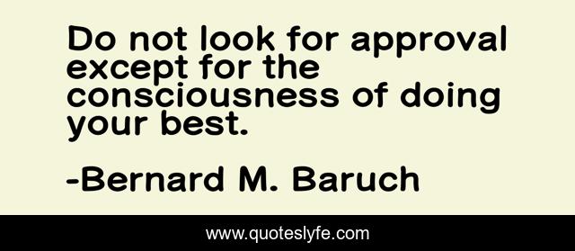 This page presents the quote "Do not look for approval except for the consciousness of doing your best.". Author of this quote is Bernard M. Baruch. This quote is about self, acceptance,.