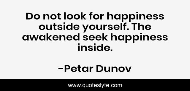 This page presents the quote "Do not look for happiness outside yourself. The awakened seek happiness inside.". Author of this quote is Petar Dunov. This quote is about self-fulfillment, wisdom, happiness, awakened, enlightenment, inner-peace,.