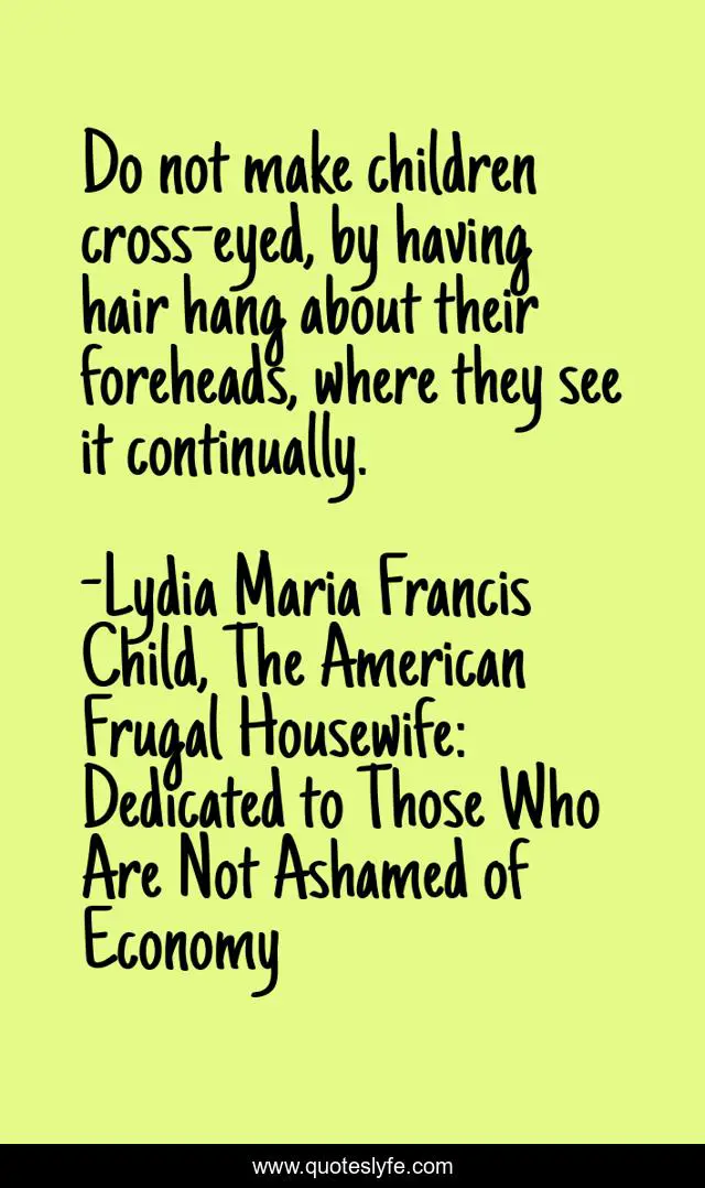 "Lydia Maria Francis Child, The American Frugal Housewife: Dedicated to Those Who Are Not Ashamed of Economy Quotes." Quoteslyfe.com, 2025. Fri. 05 Dec. 2025. <https://www.quoteslyfe.com/quote/Do-not-make-children-cross-eyed-by-99376>.