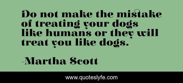This page presents the quote "Do not make the mistake of treating your dogs like humans or they will treat you like dogs.". Author of this quote is Martha Scott. This quote is about treat, mistake,.