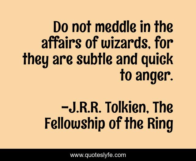 This page presents the quote "Do not meddle in the affairs of wizards, for they are subtle and quick to anger.". Author of this quote is J.R.R. Tolkien, The Fellowship of the Ring. .