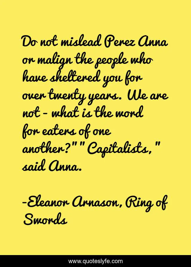 "Eleanor Arnason, Ring of Swords Quotes." Quoteslyfe.com, 2025. Mon. 08 Dec. 2025. <https://www.quoteslyfe.com/quote/Do-not-mislead-Perez-Anna-or-malign-204936>.