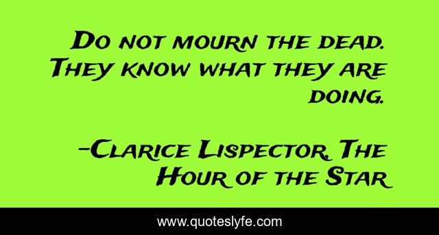 "Clarice Lispector, The Hour of the Star Quotes." Quoteslyfe.com, 2025. Fri. 05 Dec. 2025. <https://www.quoteslyfe.com/quote/Do-not-mourn-the-dead-They-know-21236>.