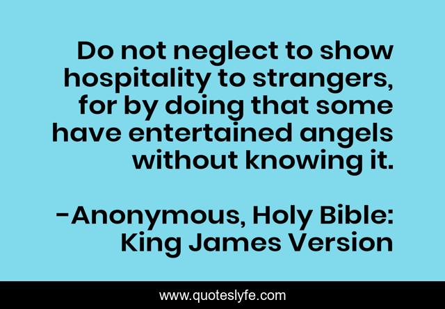 "Anonymous, Holy Bible: King James Version Quotes." Quoteslyfe.com, 2025. Mon. 08 Dec. 2025. <https://www.quoteslyfe.com/quote/Do-not-neglect-to-show-hospitality-to-5250>.