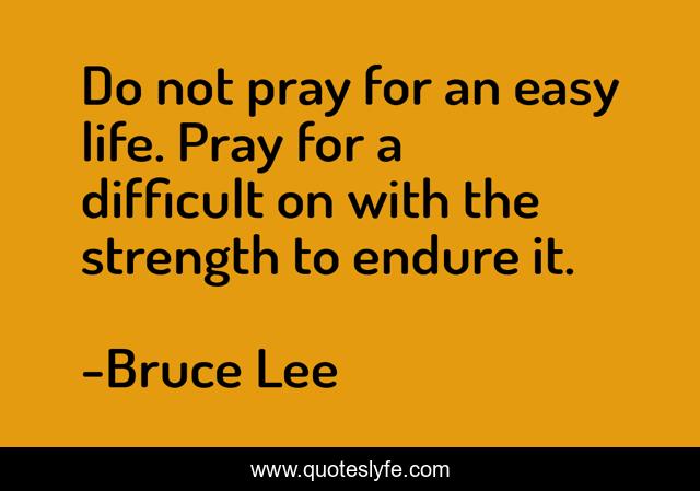 This page presents the quote "Do not pray for an easy life. Pray for a difficult on with the strength to endure it.". Author of this quote is Bruce Lee. .