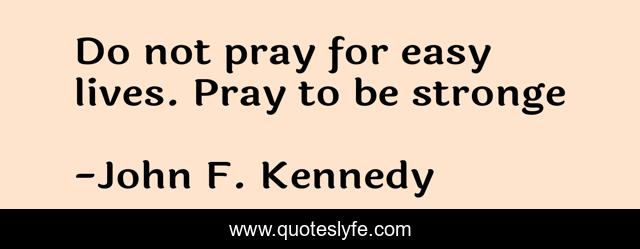 This page presents the quote "Do not pray for easy lives. Pray to be stronge". Author of this quote is John F. Kennedy. This quote is about enthusiasm, strength, inspirational, prayer,.