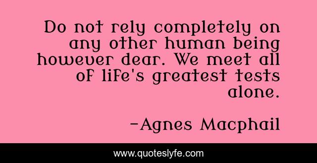 This page presents the quote "Do not rely completely on any other human being however dear. We meet all of life's greatest tests alone.". Author of this quote is Agnes Macphail. This quote is about self, reliance,.