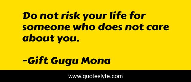 This page presents the quote "Do not risk your life for someone who does not care about you.". Author of this quote is Gift Gugu Mona. This quote is about life, someone, risk, care,.