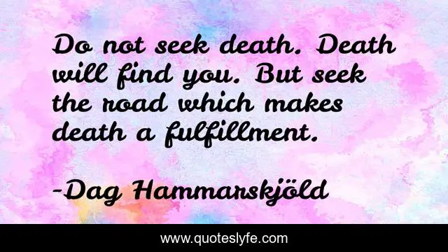 "Dag Hammarskjöld Quotes." Quoteslyfe.com, 2025. Sun. 07 Dec. 2025. <https://www.quoteslyfe.com/quote/Do-not-seek-death-Death-will-find-43994>.