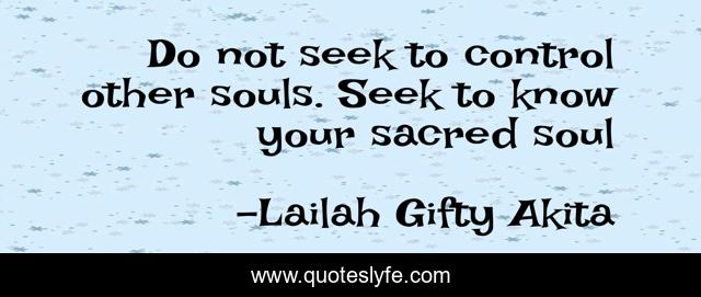 This page presents the quote "Do not seek to control other souls. Seek to know your sacred soul". Author of this quote is Lailah Gifty Akita. This quote is about control, self-awareness, seeking, healthy-living, encouragement, life-lessons,.