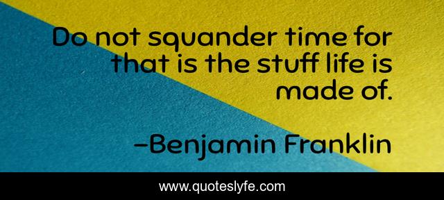 This page presents the quote "Do not squander time for that is the stuff life is made of.". Author of this quote is Benjamin Franklin. .