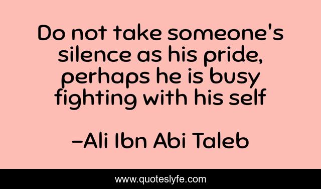 This page presents the quote "Do not take someone's silence as his pride, perhaps he is busy fighting with his self". Author of this quote is Ali Ibn Abi Taleb. This quote is about enthusiasm, inspirational, silence, fight,.