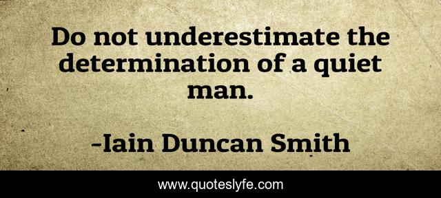 This page presents the quote "Do not underestimate the determination of a quiet man.". Author of this quote is Iain Duncan Smith. This quote is about man, determination, underestimate, quiet,.