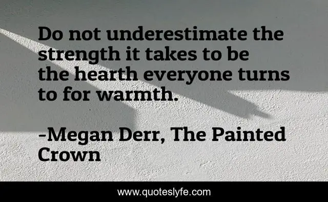 This page presents the quote "Do not underestimate the strength it takes to be the hearth everyone turns to for warmth.". Author of this quote is Megan Derr, The Painted Crown. This quote is about kindness, warmth,.