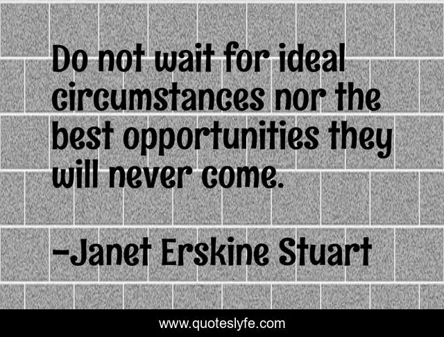 This page presents the quote "Do not wait for ideal circumstances nor the best opportunities they will never come.". Author of this quote is Janet Erskine Stuart. .