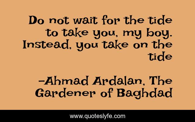 This page presents the quote "Do not wait for the tide to take you, my boy. Instead, you take on the tide". Author of this quote is Ahmad Ardalan, The Gardener of Baghdad. This quote is about age, wise-man, decisions, life, choices,.