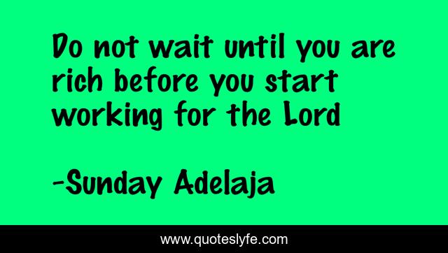 This page presents the quote "Do not wait until you are rich before you start working for the Lord". Author of this quote is Sunday Adelaja. This quote is about life, service, reluctance, calling, rich, lord,.