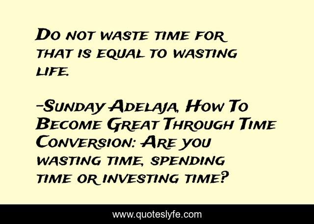 "Sunday Adelaja, How To Become Great Through Time Conversion: Are you wasting time, spending time or investing time? Quotes." Quoteslyfe.com, 2025. Sun. 07 Dec. 2025. <https://www.quoteslyfe.com/quote/Do-not-waste-time-for-that-is-39176>.