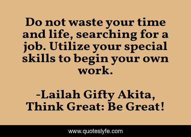 "Lailah Gifty Akita, Think Great: Be Great! Quotes." Quoteslyfe.com, 2025. Mon. 08 Dec. 2025. <https://www.quoteslyfe.com/quote/Do-not-waste-your-time-and-life-95047>.