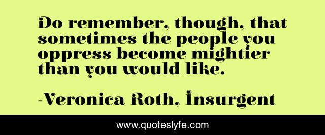 This page presents the quote "Do remember, though, that sometimes the people you oppress become mightier than you would like.". Author of this quote is Veronica Roth, Insurgent. .