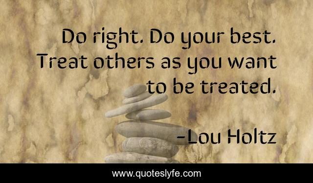 This page presents the quote "Do right. Do your best. Treat others as you want to be treated.". Author of this quote is Lou Holtz. This quote is about treat, do your best,.
