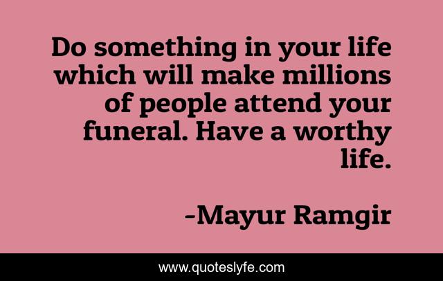This page presents the quote "Do something in your life which will make millions of people attend your funeral. Have a worthy life.". Author of this quote is Mayur Ramgir. This quote is about leadership, entrepreneurship,.