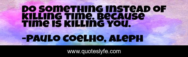 "Paulo Coelho, Aleph Quotes." Quoteslyfe.com, 2025. Fri. 05 Dec. 2025. <https://www.quoteslyfe.com/quote/Do-something-instead-of-killing-time-Because-157968>.