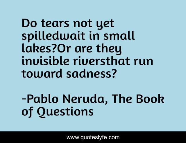 This page presents the quote "Do tears not yet spilledwait in small lakes?Or are they invisible riversthat run toward sadness?". Author of this quote is Pablo Neruda, The Book of Questions. This quote is about poetry-life, neruda, poetry,.