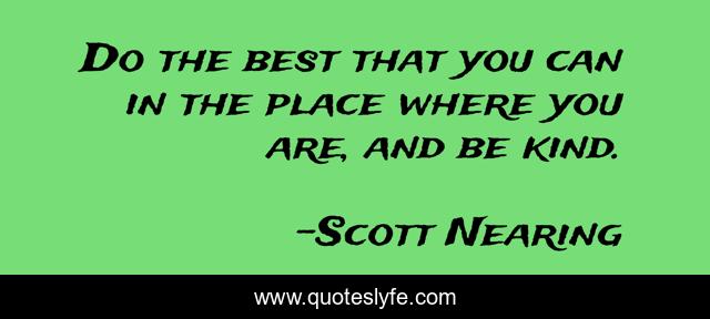 This page presents the quote "Do the best that you can in the place where you are, and be kind.". Author of this quote is Scott Nearing. This quote is about be kind, place,.
