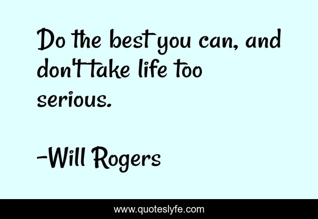 This page presents the quote "Do the best you can, and don't take life too serious.". Author of this quote is Will Rogers. This quote is about life-management, happiness,.