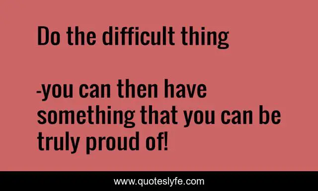 "you can then have something that you can be truly proud of! Quotes." Quoteslyfe.com, 2025. Fri. 05 Dec. 2025. <https://www.quoteslyfe.com/quote/Do-the-difficult-thing-229122>.
