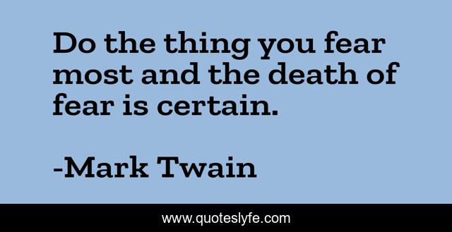 This page presents the quote "Do the thing you fear most and the death of fear is certain.". Author of this quote is Mark Twain. This quote is about most, fear,.