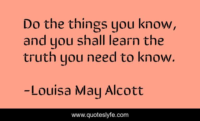 This page presents the quote "Do the things you know, and you shall learn the truth you need to know.". Author of this quote is Louisa May Alcott. This quote is about learning, knowledge, truth,.
