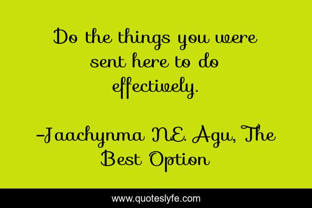 This page presents the quote "Do the things you were sent here to do effectively.". Author of this quote is Jaachynma N.E. Agu, The Best Option. .