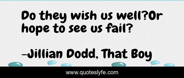 This page presents the quote "Do they wish us well?Or hope to see us fail?". Author of this quote is Jillian Dodd, That Boy. This quote is about relationships, love, success, failure, fail, survive, affection,.