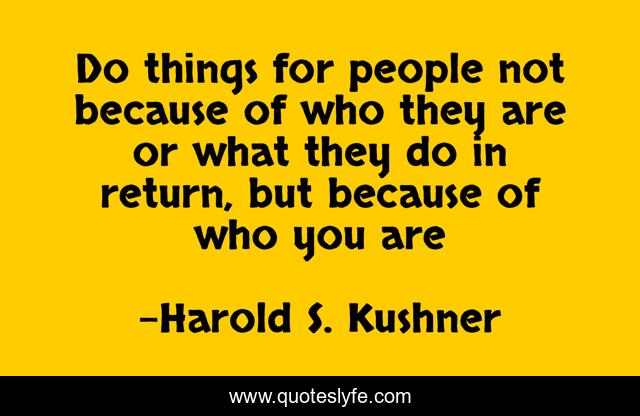 This page presents the quote "Do things for people not because of who they are or what they do in return, but because of who you are". Author of this quote is Harold S. Kushner. .