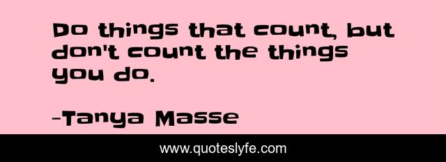 This page presents the quote "Do things that count, but don't count the things you do.". Author of this quote is Tanya Masse. This quote is about life-lesson, quotes-to-live-by, awesome, quotes-on-life, quotes-to-define-my-life,.