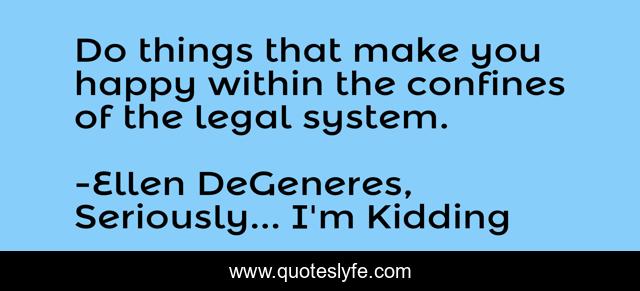 This page presents the quote "Do things that make you happy within the confines of the legal system.". Author of this quote is Ellen DeGeneres, Seriously... I'm Kidding. This quote is about funny, law, comedy,.